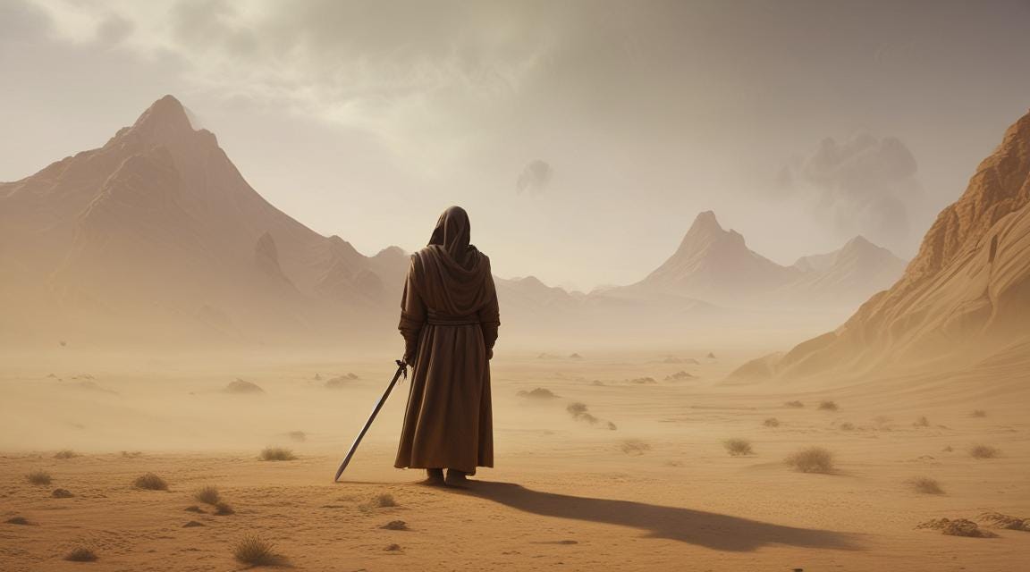 After losing their pursuers in the storm, Paul is left fighting for control of the craft. The winds are too strong. The sand cuts through the metal like shards of supersonic glass. He struggles and fails to bend the situation to his will. He realises that his only option is surrender. So, he lets go and closes his eyes, pushing the control away.